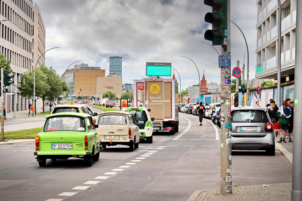 Ještě větší radost mají z návratu na pevninu. Slibuji jim totiž berlínské LEGOLAND Discovery centrum. Herna z dánských kostek mláďata uchvátí. Nechtějí ji za žádnou cenu opustit. Braniborská brána, výhled z kopule Reichstagu ani prohlídka berlínské zdi na East Side Gallery takový úspěch nemají. Právě tam, když už si myslím, že s motoristickými zážitky je konec, slyším v dáli známý dvoutaktní zvuk… Ring, Ding, Ding… No jasně, to musí být bakelitový Trabant symbol "DDR". Mám tak před sebou nejvíc ikonický obrázek Berlína v reálném prostoru.
